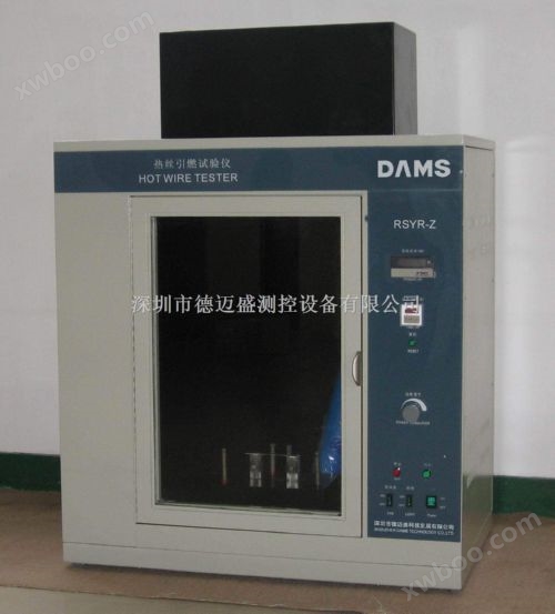 热丝引燃试验仪 采用特定尺寸(ф0.5mm长250mm)和特定材质(Ni80/Cr20)的电热丝,经规定发热功率(0.26W/mm)和规定时间(8s~12s)预退火后,按一定的绕线张力(5.4N)和一定的绕线间距(6.35mm)在试品上绕5整圈,将绕有电热丝的试品在规定发热功率下(0.26W/mm)试验至120s,以试品是否引燃或起燃时间来对其着火危险性进行评定。