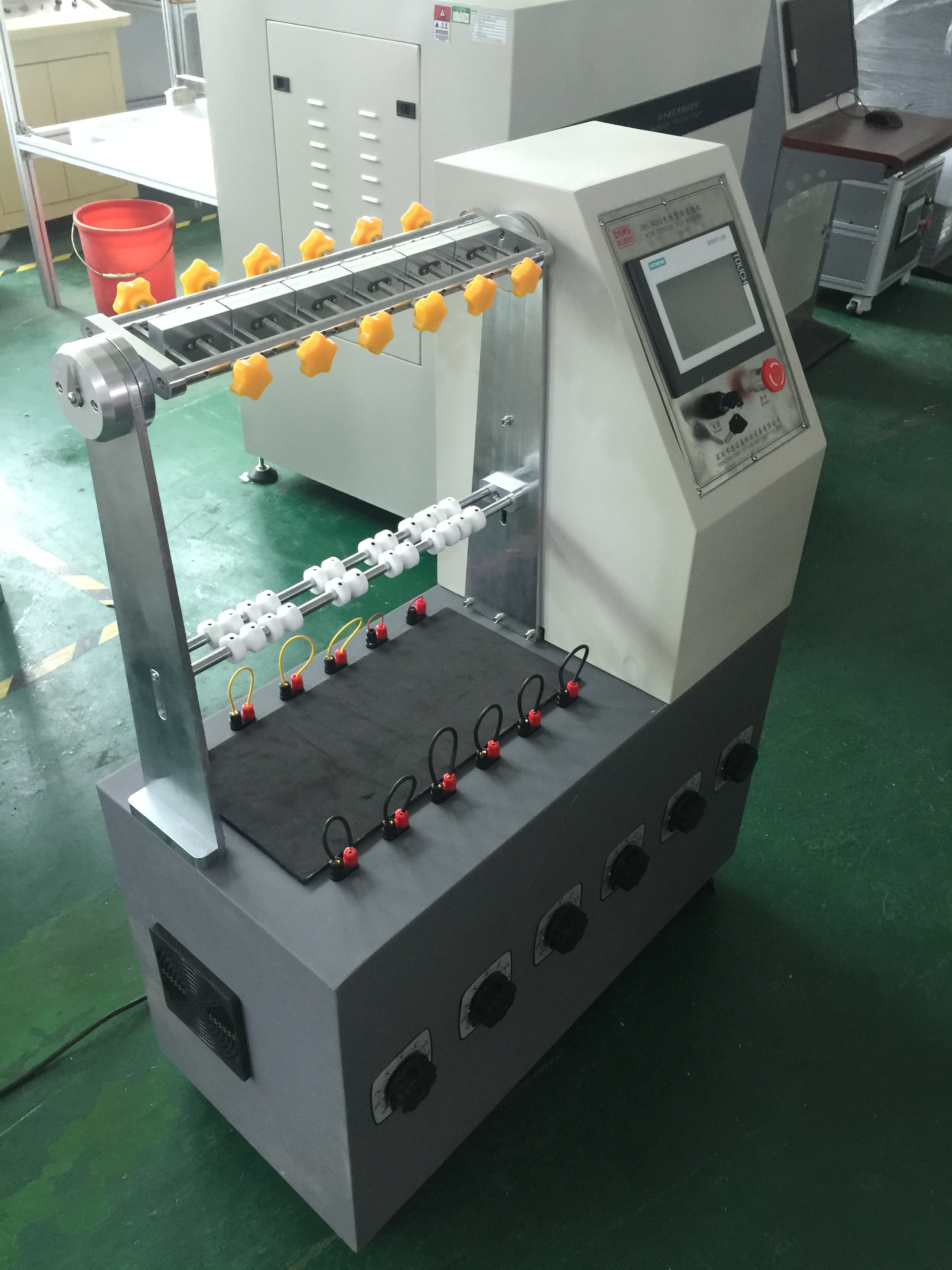 本机是检测AC、DC电源线季节插头引出线之耐折疲劳强度的专用设备。能自动计数,试料弯曲折至断线无法通电时,能自动停止操作。(标准型配转速显示)