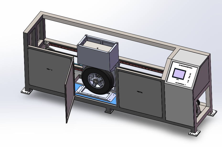 并装有限位保护,另一组驱动装置带动碾压机构实现前后碾压动作,主要部件以不锈钢和铝件制成。(保证轮胎是在正常滚动的情况下碾压样品)