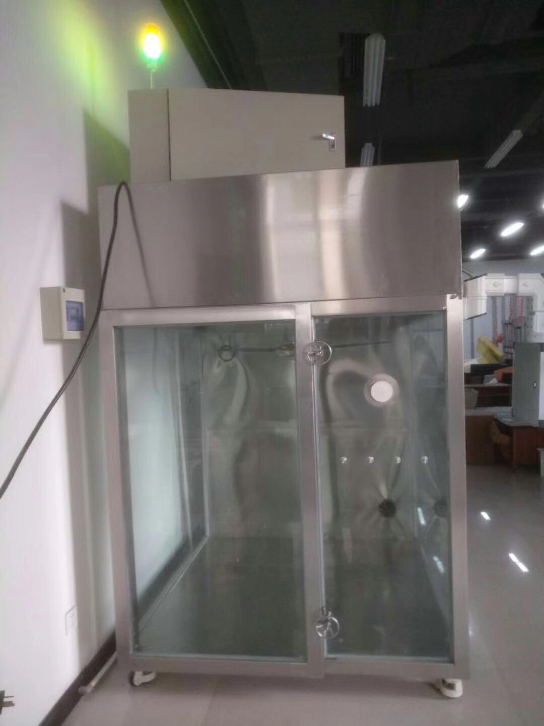甲醛、甲苯、TVOC净化器测试舱,空气净化器测试舱主要用于模拟检测空气净化器污染物去除试验,依据QB/T 5364-2019《GB/T18801-2015空气净化器》设计制作。主要由实验室、空气循环装置、排气系统、加样装置、设备电器控制系统(电器开关、传感器等)组成。