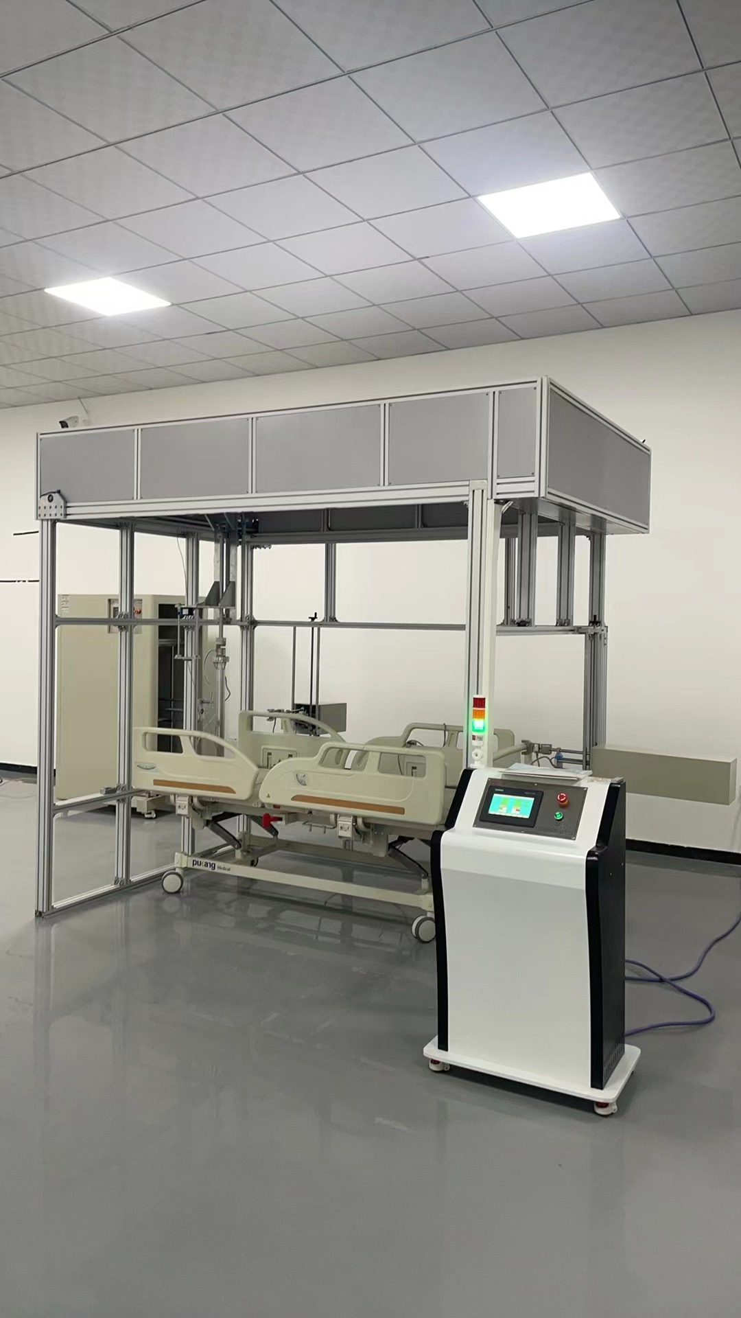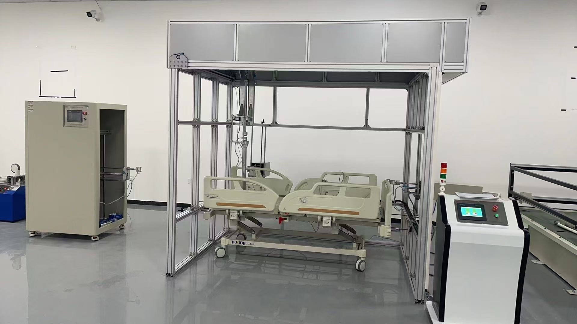 适用于医疗床的动载荷、耐冲击、抗压测试。符合标准YY9706.252 、ANSI/BIFMA 5.1;EN 1730/1728;QB/T 2280 YY0571 图BB.2、YY9706.252-2021《医用电气设备第2-52部分:医用病床的基本安全和基本性能专用要求》标准中边栏强度和栓锁可靠性”及第201.9.8.3.3.4“拉伸杆的动态试验”要求等设计制作。