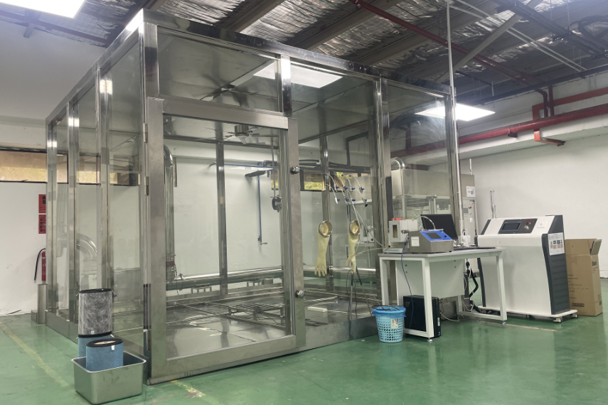舱体结构与密封性 ◦ 舱体材质:需选用不吸附、不释放污染物的材料,如 304 不锈钢、聚四氟乙烯(PTFE)等,避免舱体本身对检测结果的干扰。 ◦ 密封性:舱内压力略高于外界(防止外界污染物渗入),泄漏率需≤0.05%/h,确保舱内污染物浓度稳定可控。 ◦ 舱体容积:常用规格为 1m³(小型试验)、30m³(模拟普通房间)、100m³(模拟大空间),需根据检测需求选择,且舱内体积误差≤±2%。