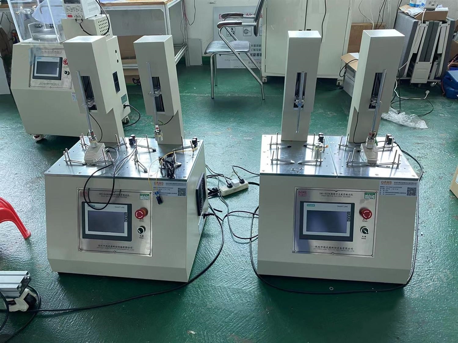1、 根据标准YY 1057-2016和GB9706.1-2020的测试要求而设计制造的专门设备,适用于医用脚踏开关的寿命试验。设备采用铝合金机架,不锈钢封板,由电极驱动,触摸屏显示及设置测试参数,PLC控制。可预设试验次数、试验速率。