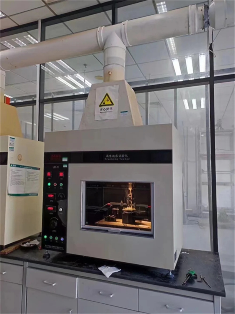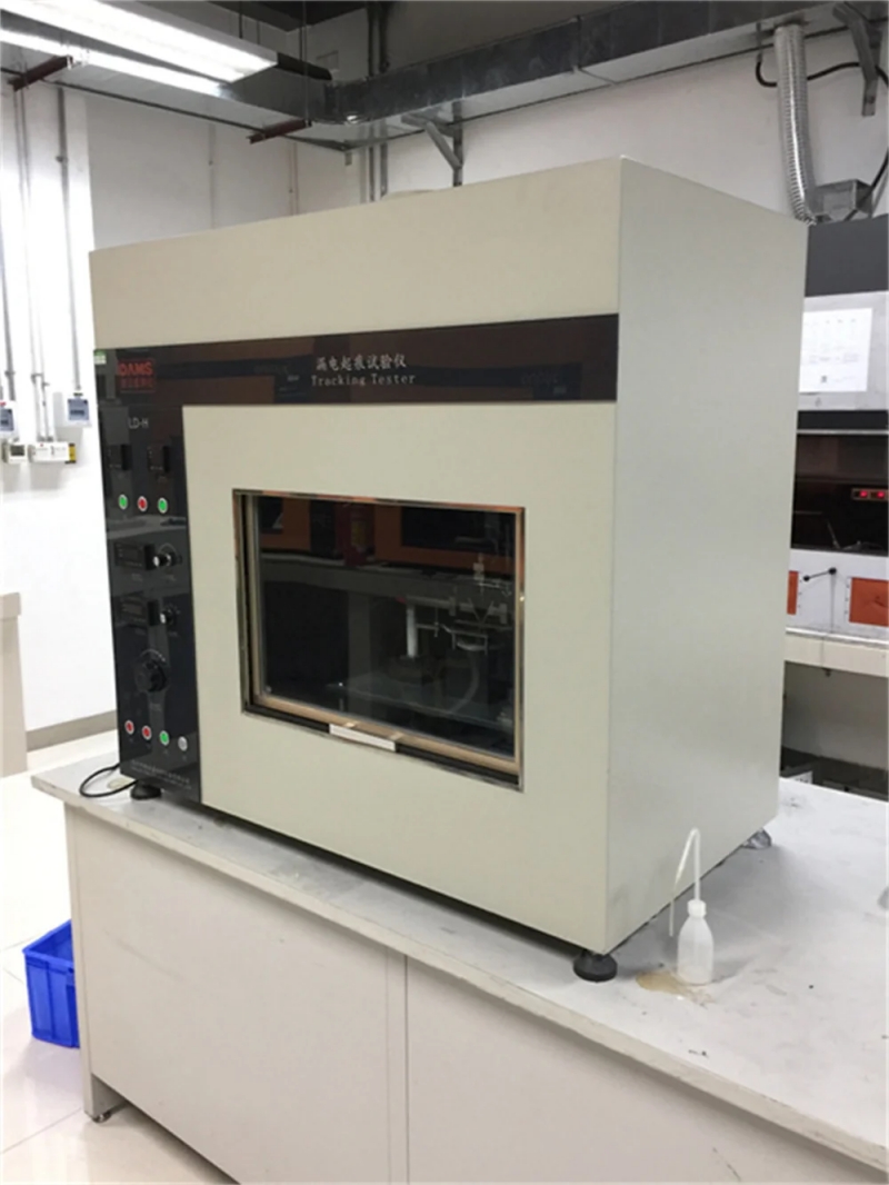 在电器产品受潮湿和杂质环境的影响下,不同极性带电部件之间或带电部件与接地金属之间可能会引起绝缘上的漏电,产生的电弧对电器造成击穿短路或由于放电使材料电蚀损,甚至起燃导致火灾。漏电起痕试验就是模拟上述情况对绝缘材料进行的一种破坏性试验,用以测量和评定在规定电压下,绝缘体在电场和含杂质水的作用时的相对耐漏电起痕性,适用于电工电子产品、家用电器的固体电器绝缘材料及其产品,如:继电器插座、转换开关盖、接触器等……。