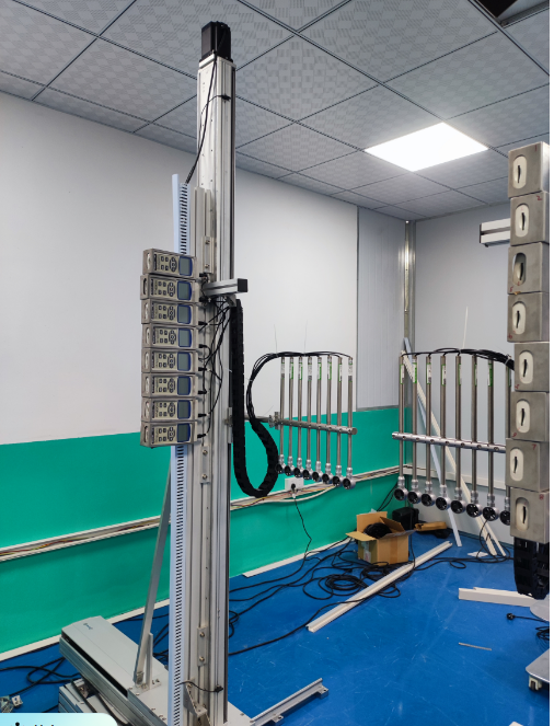 测量装置按照 BS EN IEC 60879:2019 技术规格要求: 采用塔扇和无叶风扇矩形风量累加测量方法,能符合塔扇及无叶风扇 等风量测试要求.采用 16 个风速表采集风速(横向扫描完再上下扫描)