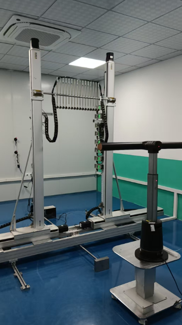 1. 将台扇放置在升降台上,调整台扇扇叶轴心与后墙距离至少为1200mm,台扇放在升降台上调整台扇风叶轴线高度为1500mm。调整风扇使扇叶与地面保持垂直。(配套水平仪校准)