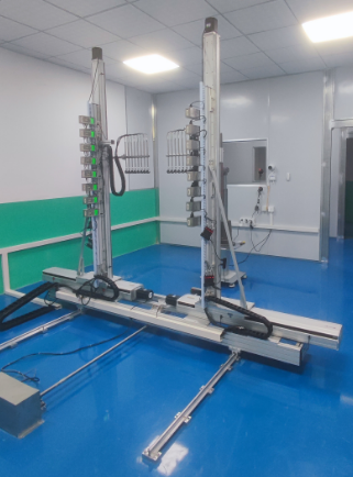 3. 分别设定手动前、后、左、右移动速度(建议速度设置为5mm/s),切换到手动模式,先根据监控画面调整左风速计左右移动使激光与风速计中心与重合,点击置零,待风速计自动运行到140mm处,同样步骤分别操作右、前、后。(操作过程如果风速计与激光,始终不能保持重合,需要使用内6角扳手调整风速计的位置)(如下图所示)